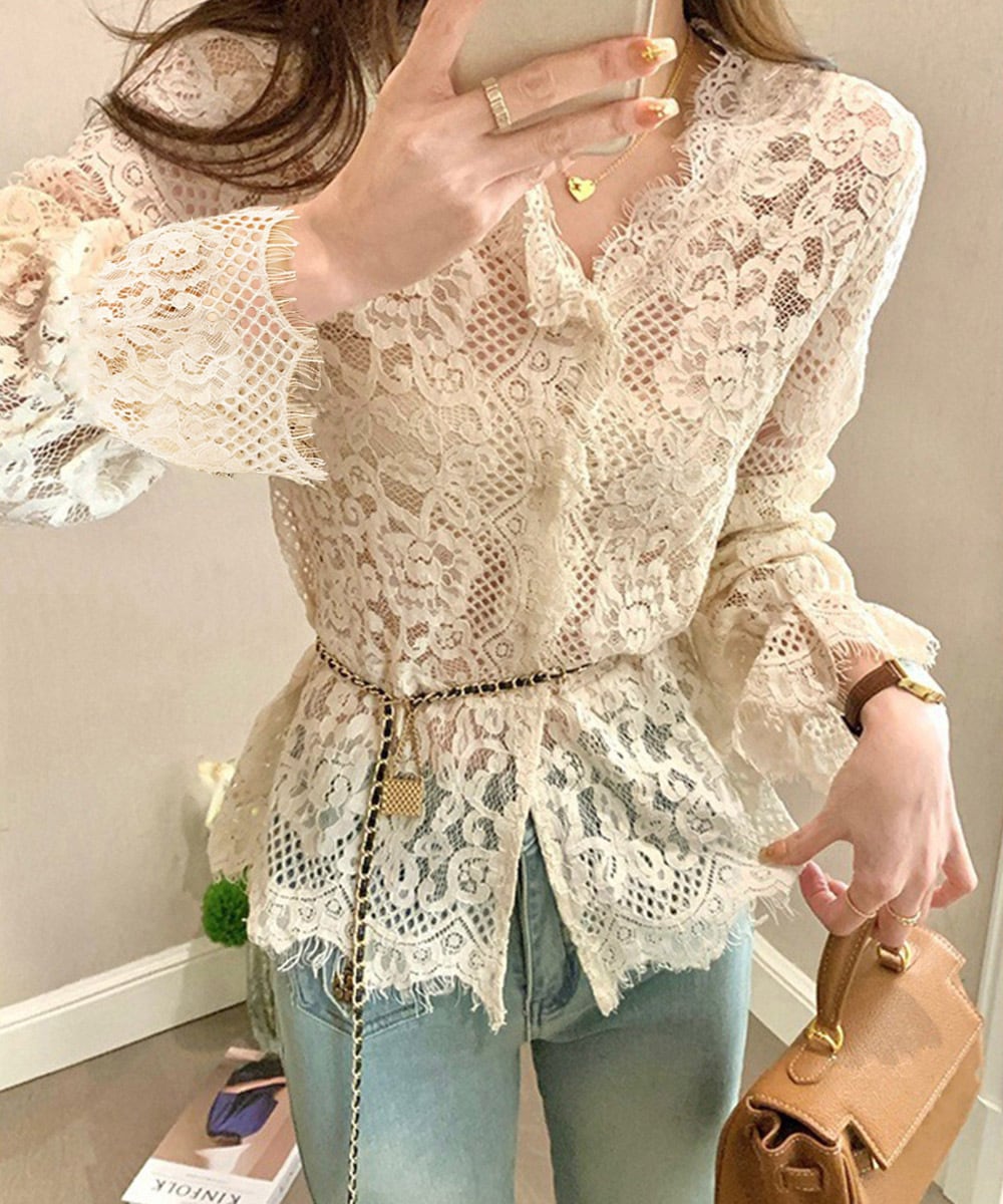 シアーブラウス春秋 レースシャツ透け感 エレガントブラウス