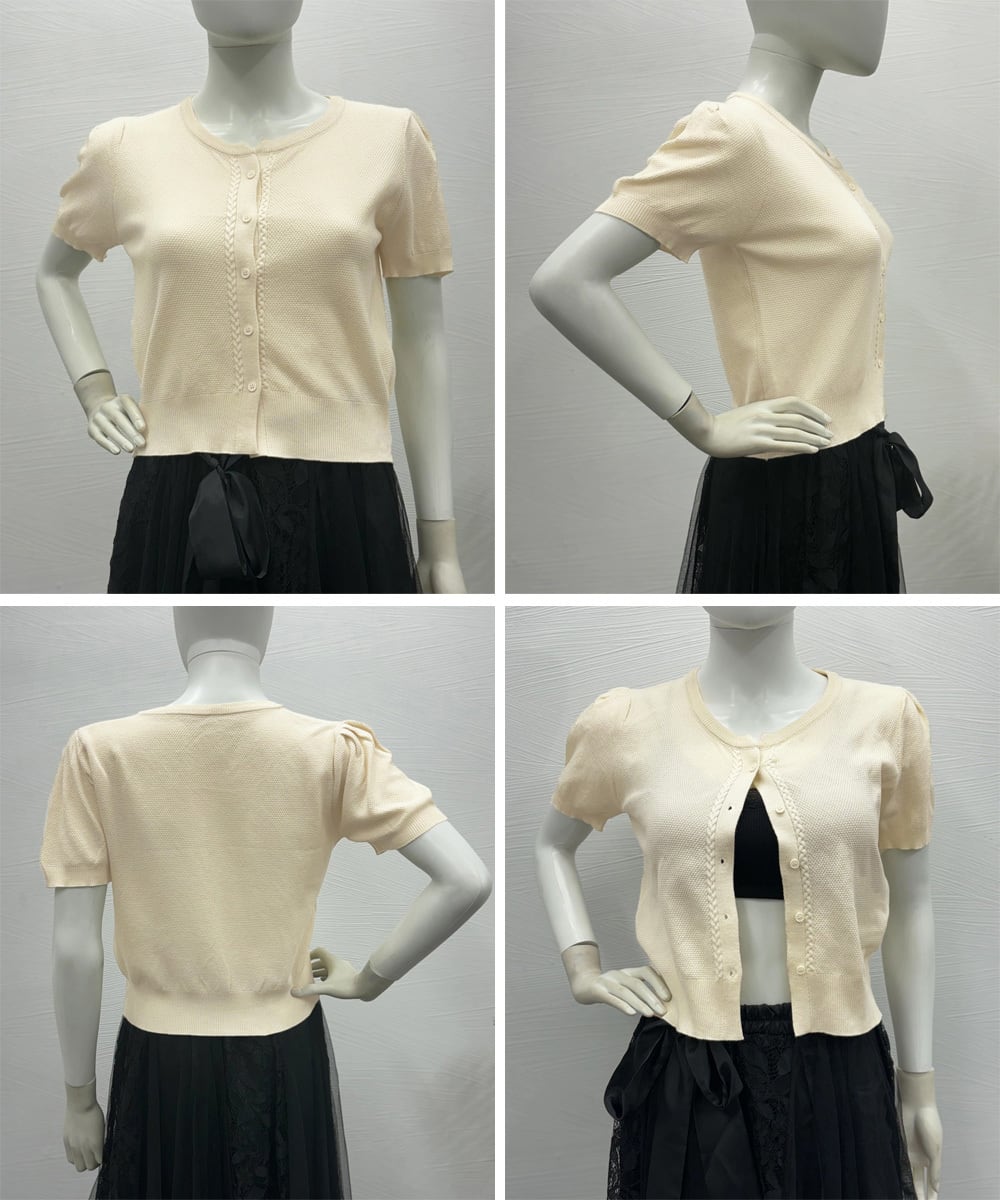 レディース ニットトップス ショート丈 クールネック 薄手 半袖 サマーカーディガン カジュアル オフィス おしゃれ
