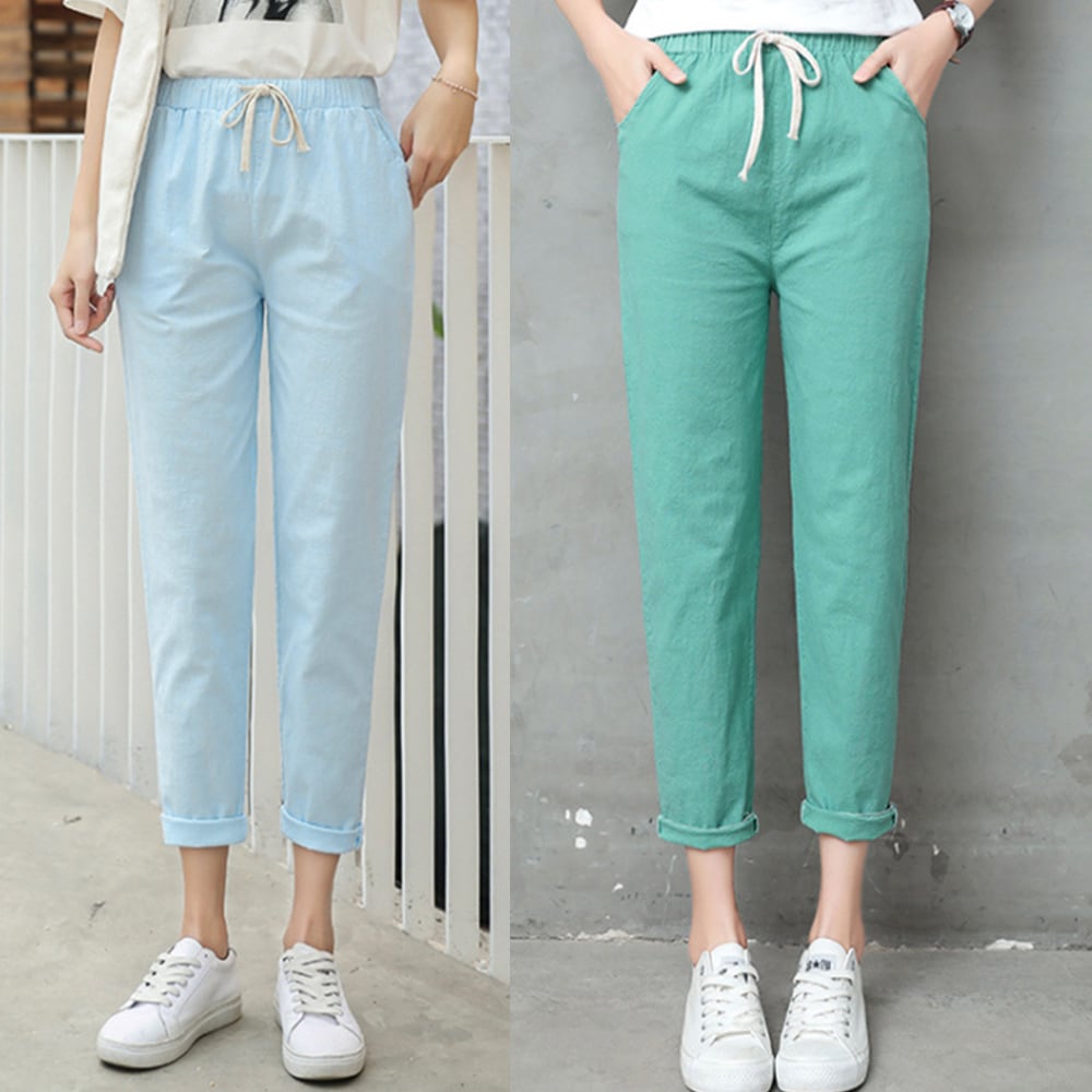 ロングパンツ春夏/9分丈カラーパンツ/長ズボン薄手女性