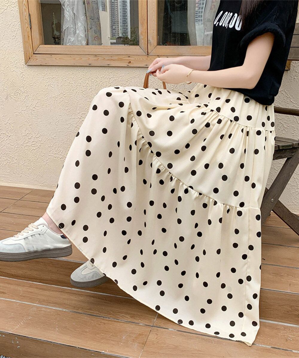 ランダムに散りばめられたドット柄が可愛い!トレンド感たっぷりのティアードスカート