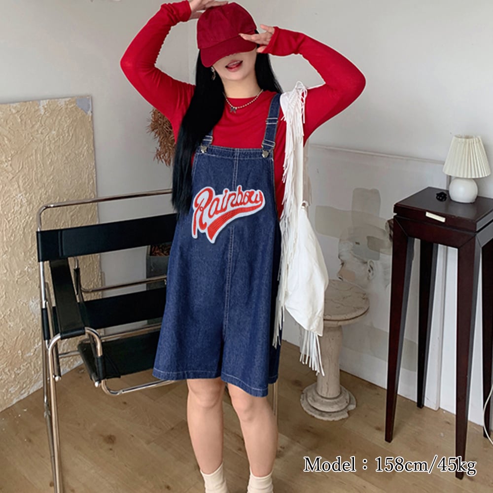 可愛い ワイド デニムオーバーオール 重ね着 レディース おしゃれ デニムパンツ カジュアル ジーンズ韓国 10代20代