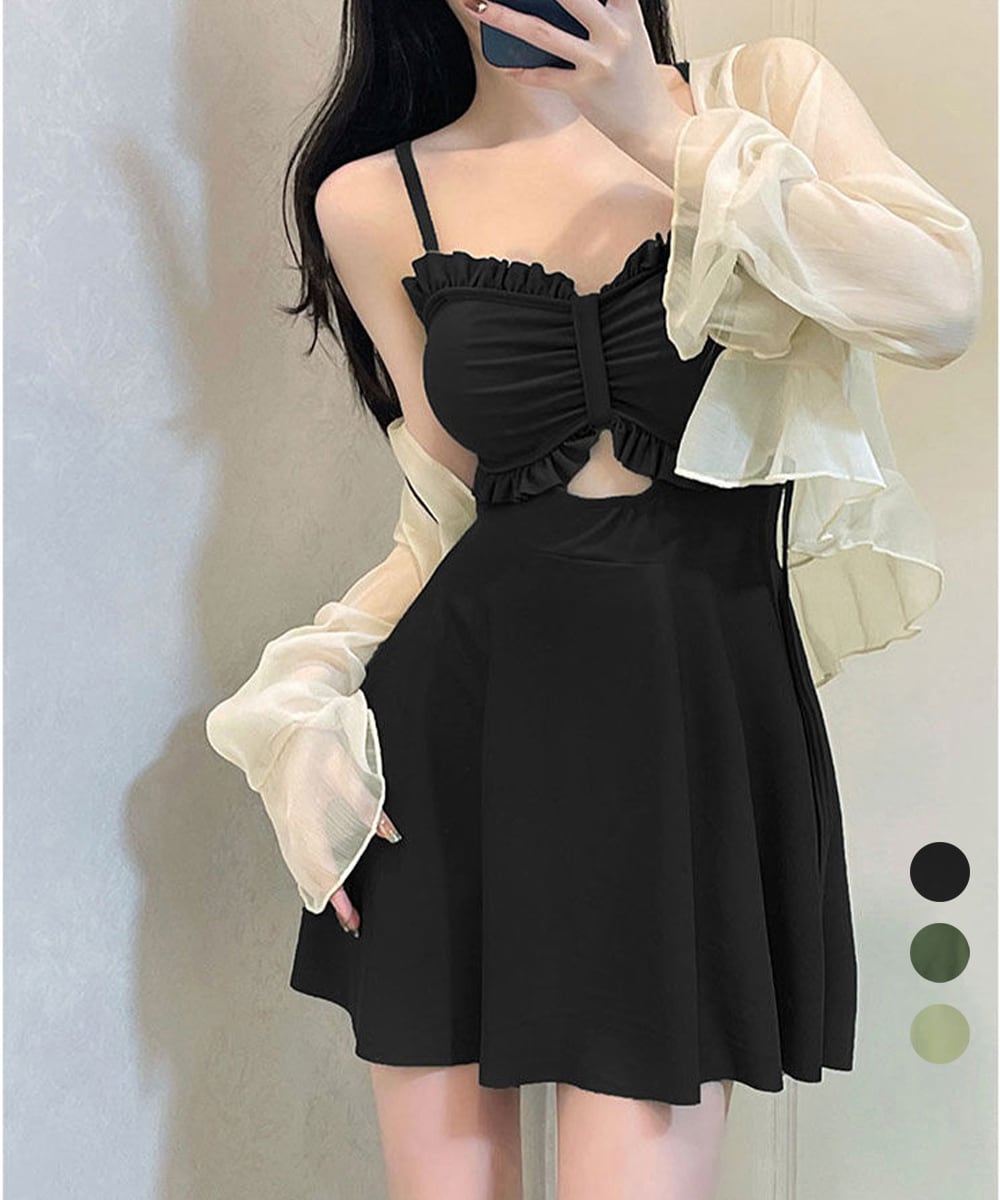 カーディガン付きワンピース水着2点セット