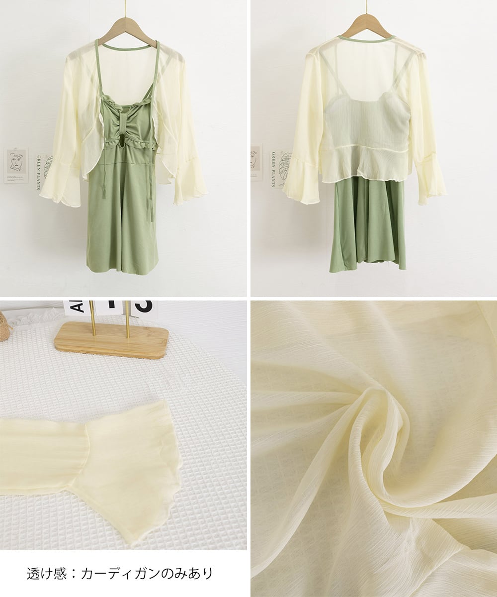 程よい透け感のあるシアーカーディガンをセットで着れば、ぐっと上品な印象に、日焼け対策にもぴったり