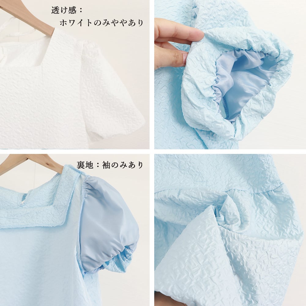 レディース きれいめ 半袖フレアブラウス パフスリーブ ぽこぽこトップス春夏 無地バックリボン上品ブラウス 通勤おしゃれ