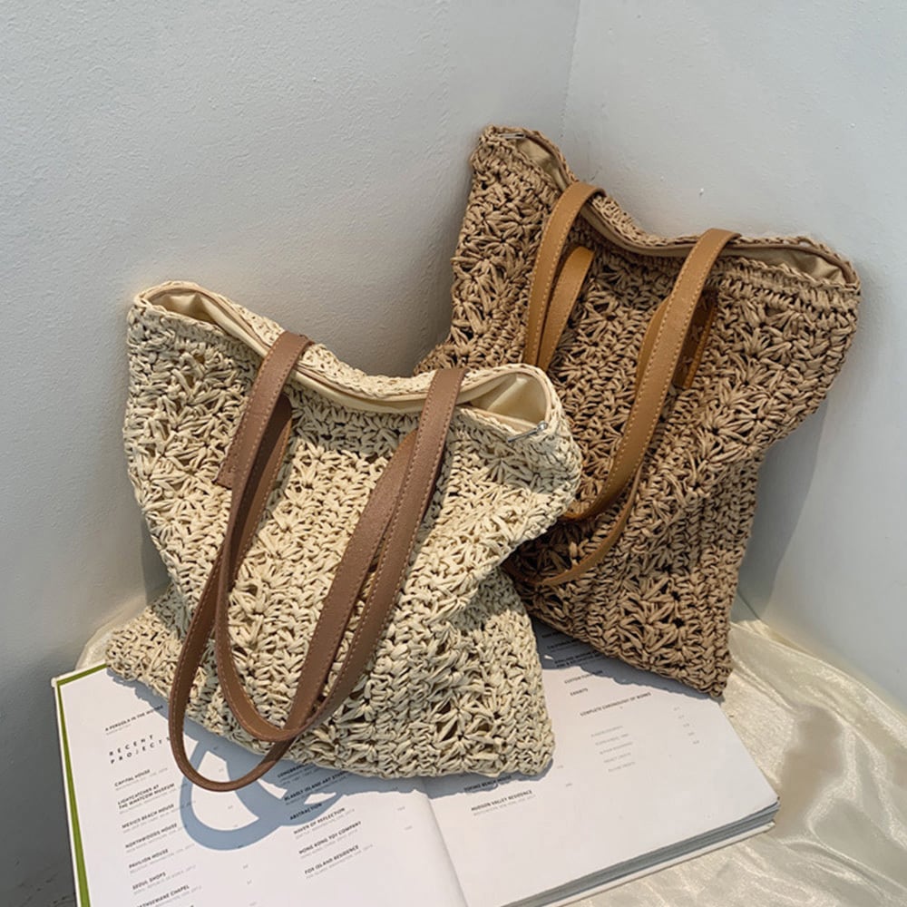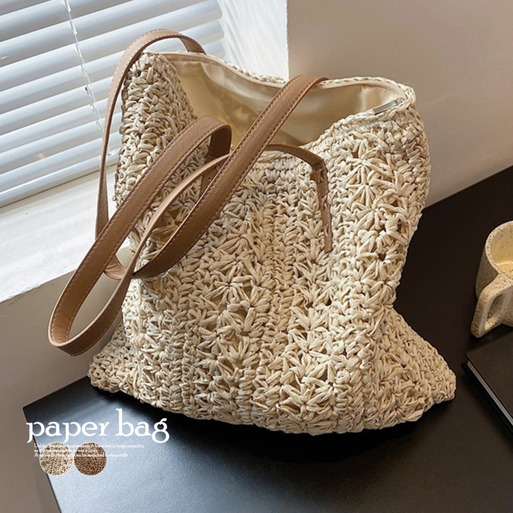 レディース 可愛い ざっくり編みバッグ 韓国風 トートバッグ リゾート 手提げバッグ かごバッグ 夏 肩掛けバッグ 軽量