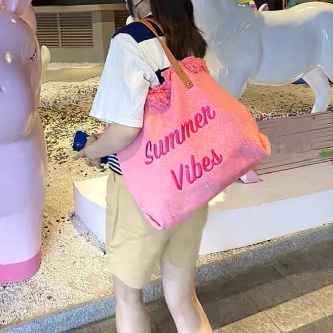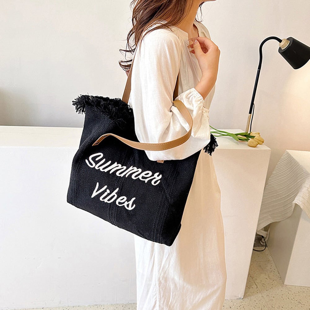 おしゃれ英字ロゴ 肩掛けかばん レディース ビーチバッグ 手提げバッグ カジュアルマザーズバッグ 大きめかばん 韓国風鞄