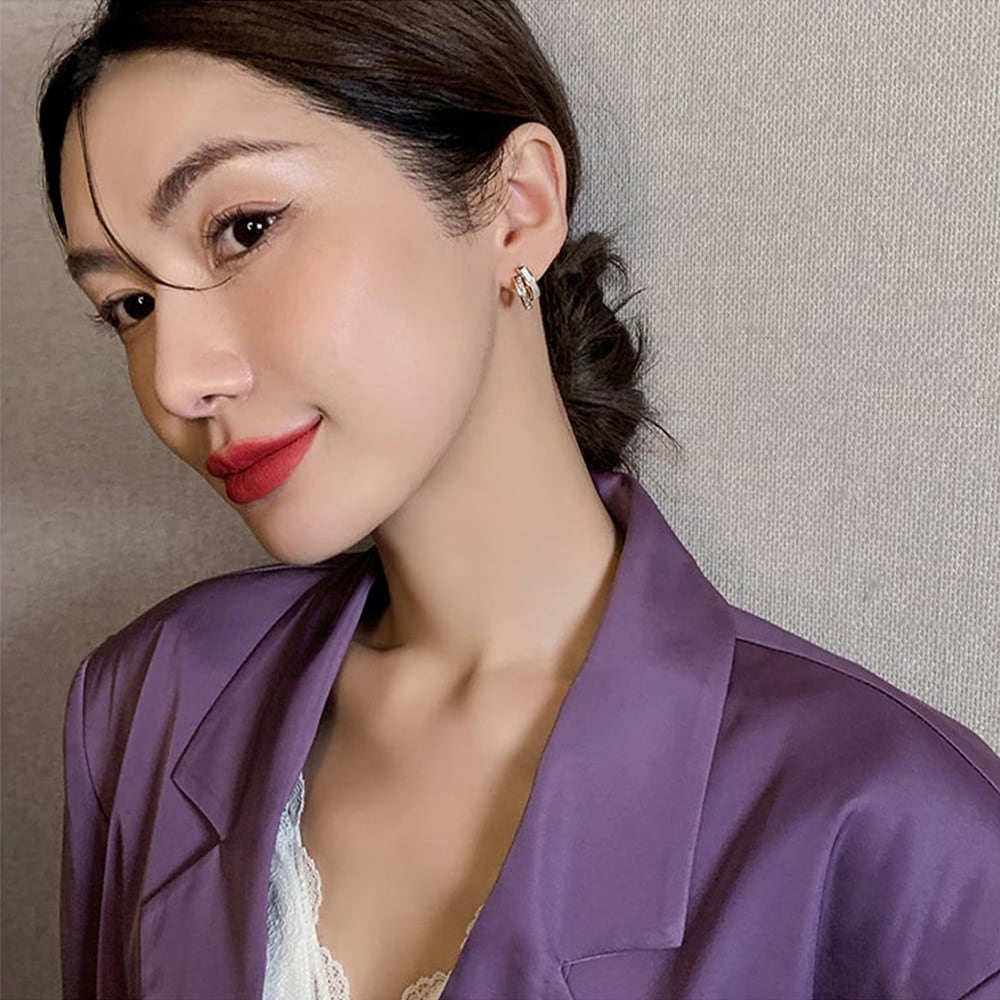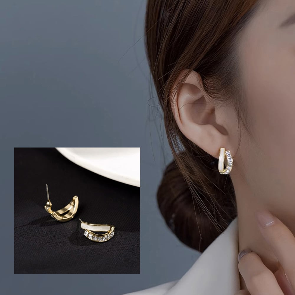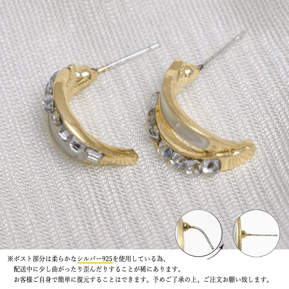 スタイリッシュなフォルムが魅力的、小ぶりながらも付けるだけで耳元を華やかに演出してくれるC型スタッドピアス