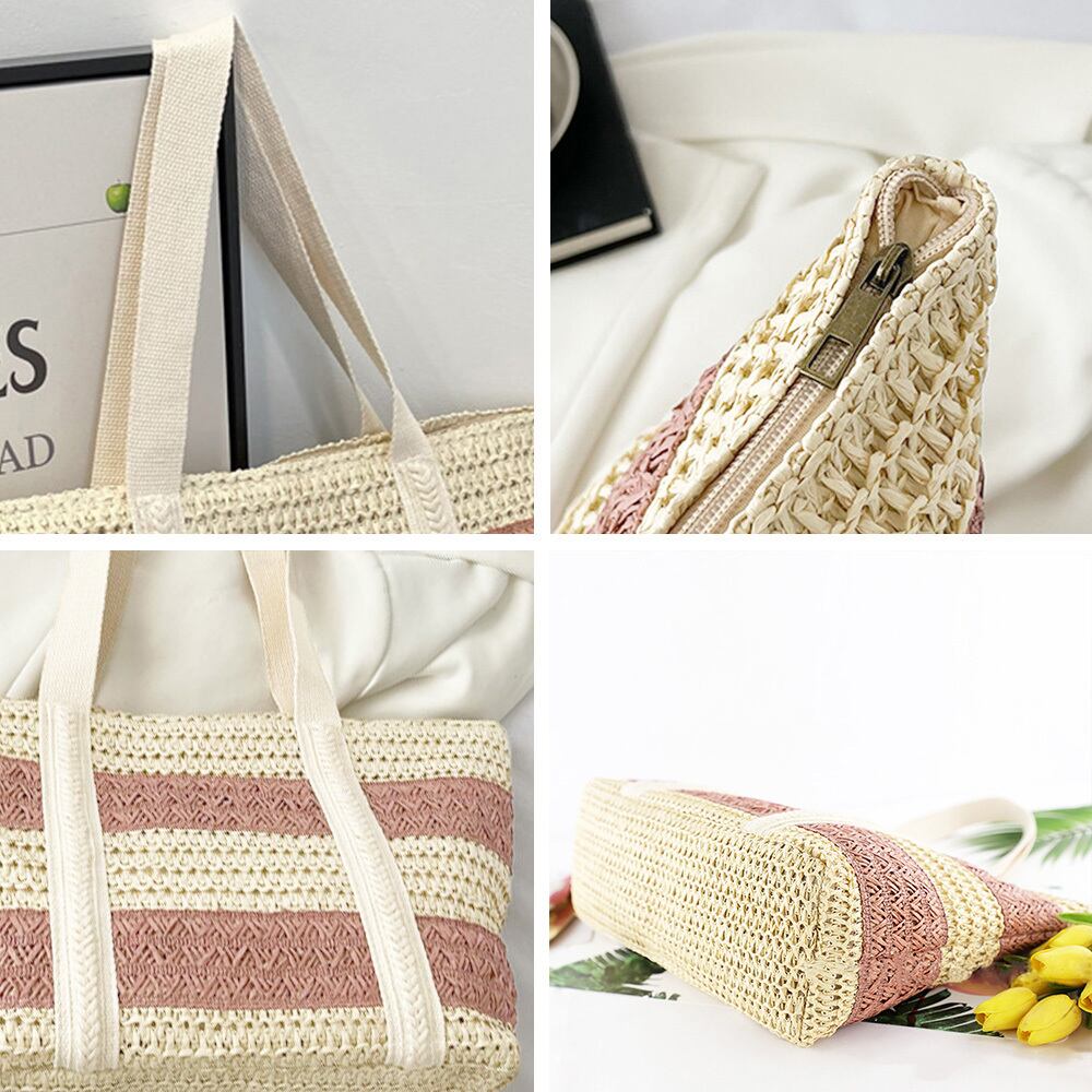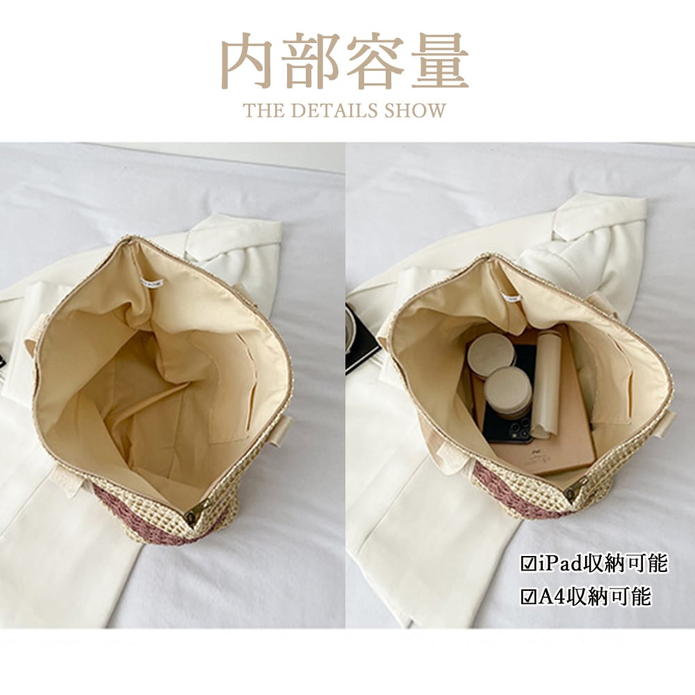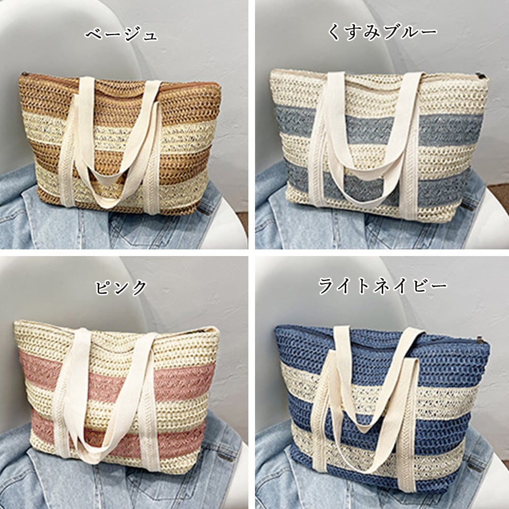 レディース おしゃれ ストローバッグ 麦わらバッグ A4サイズ 大容量肩掛けバッグ 春・夏新作 サマーバッグ バイカラー大人可愛い