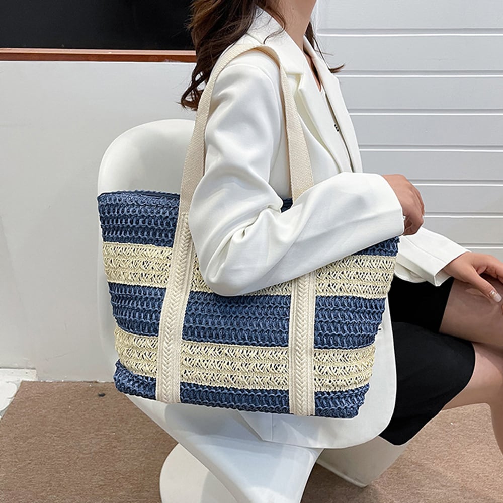 ペーパートート配色 バスケットトート海 カジュアル カバン
