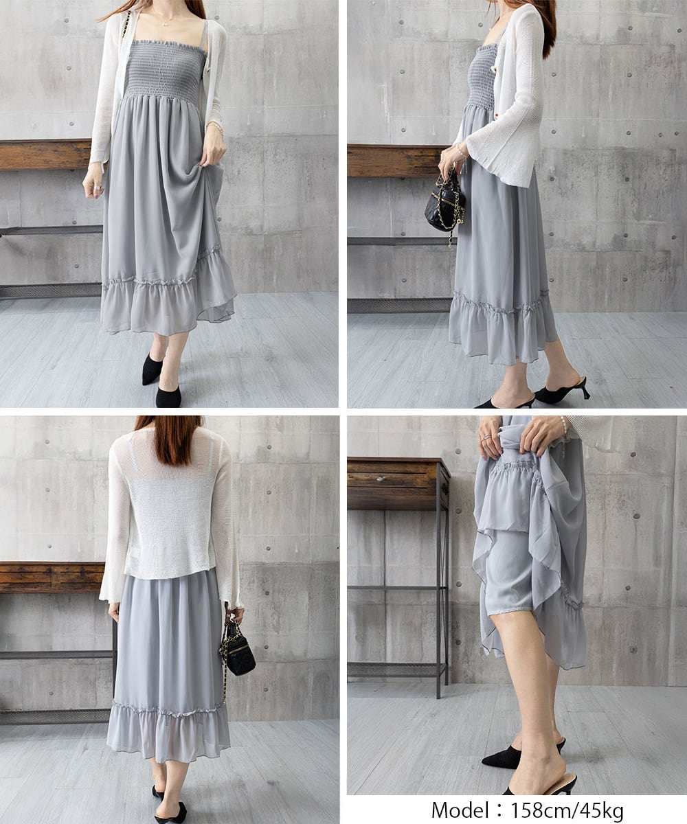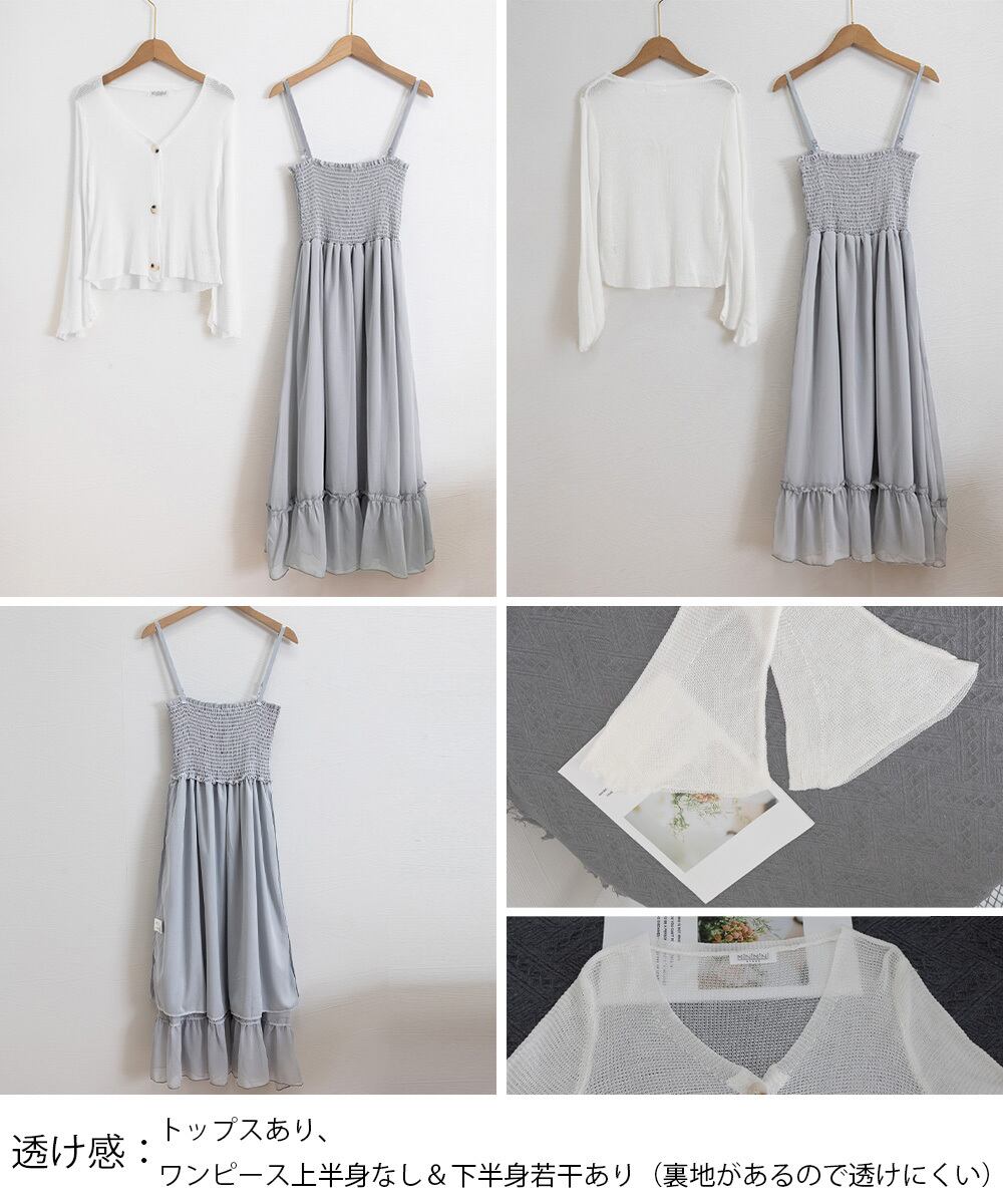 レディース フレアロングワンピ シアーカーディガン セットアップ 韓国風春夏服シャーリングワンピ 大人可愛い羽織り透け感