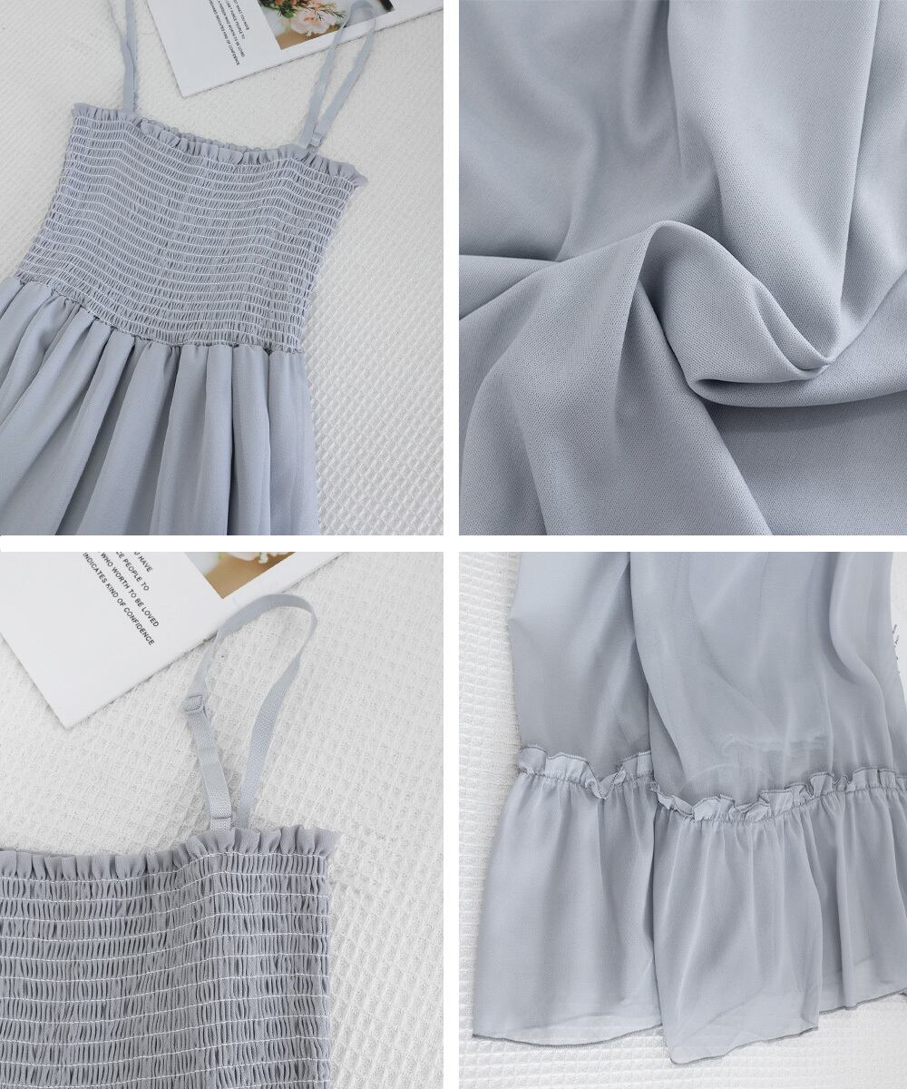 ビーチワンピース夏 ミモレ丈ワンピース フリルワンピ着やせ