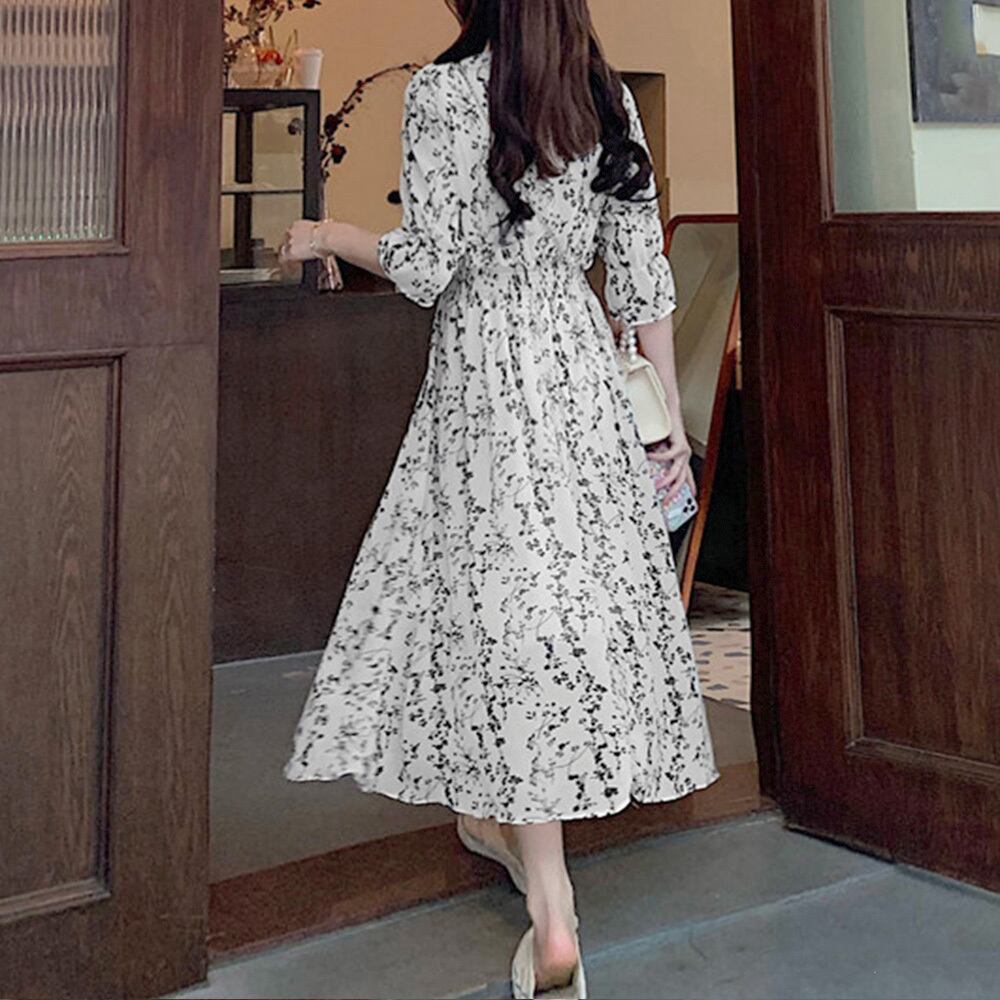 FW-005:花柄 フレアワンピース春夏カシュクール風
