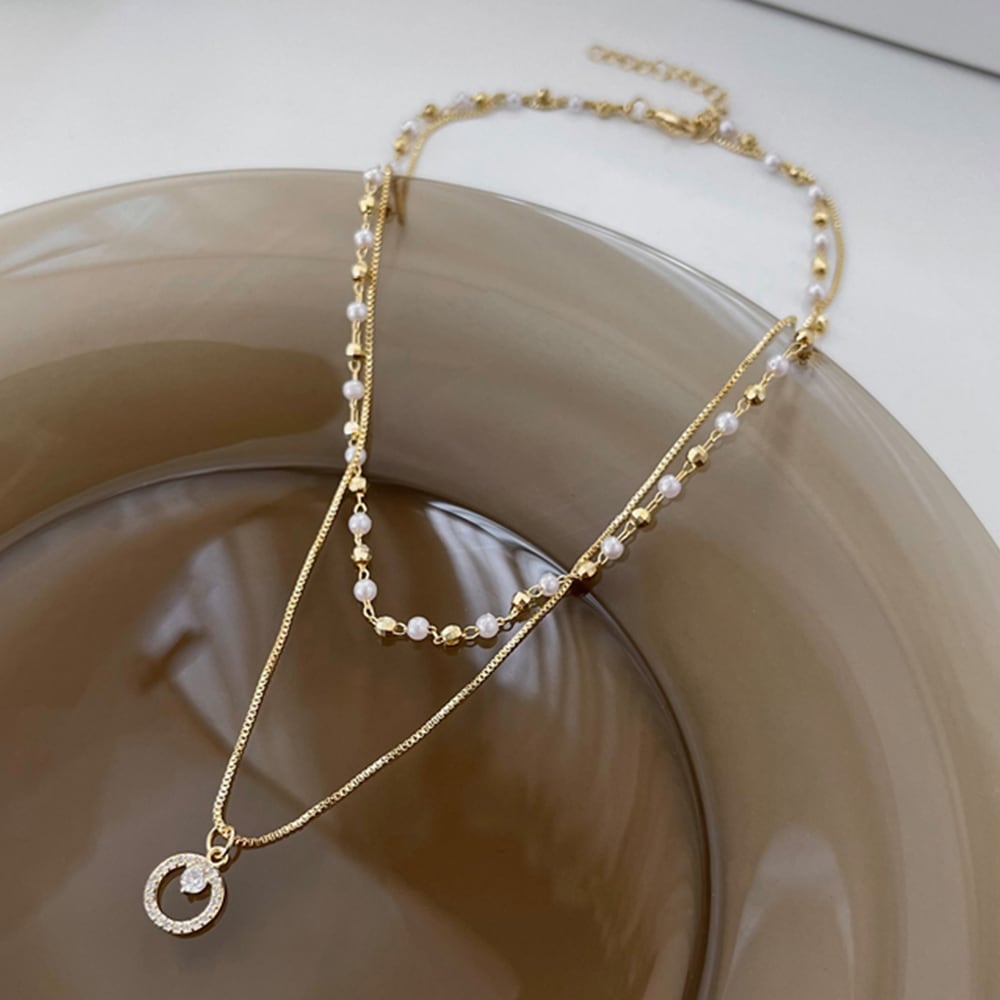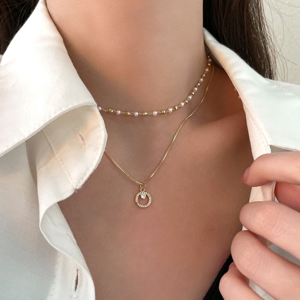 デコルテを上品に引き立ててくれる大人っぽい二連ネックレス。