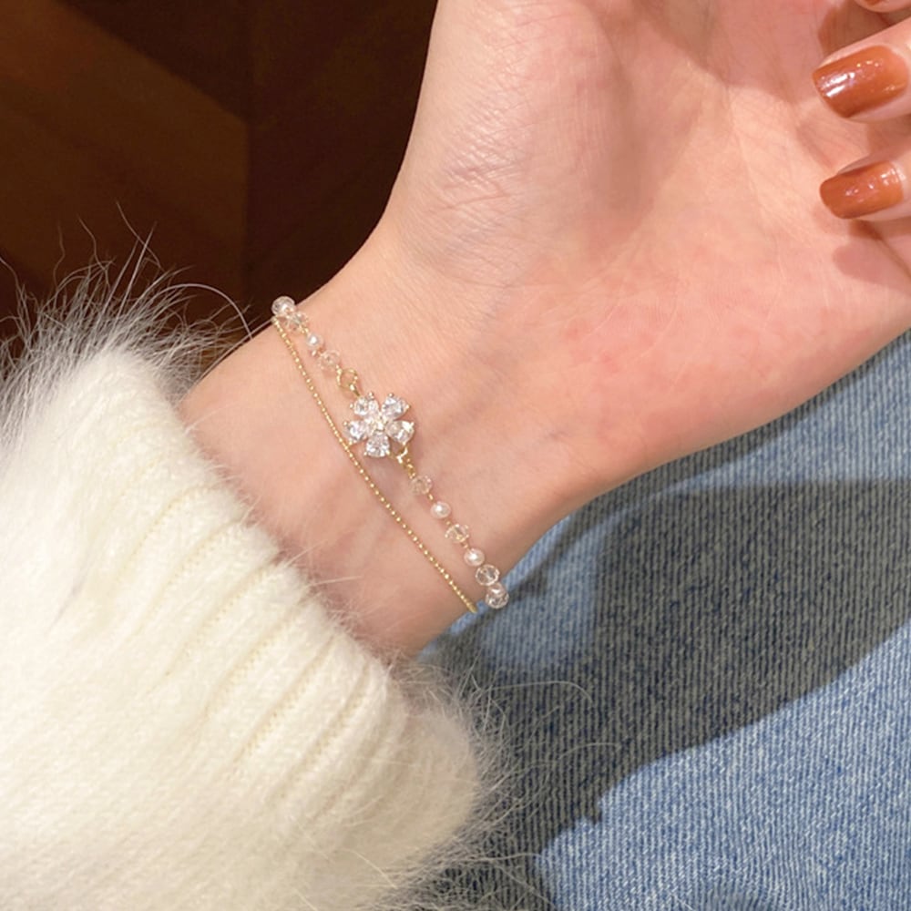 花モチーフにラインストーンで飾られた2連チェーンブレスレットです