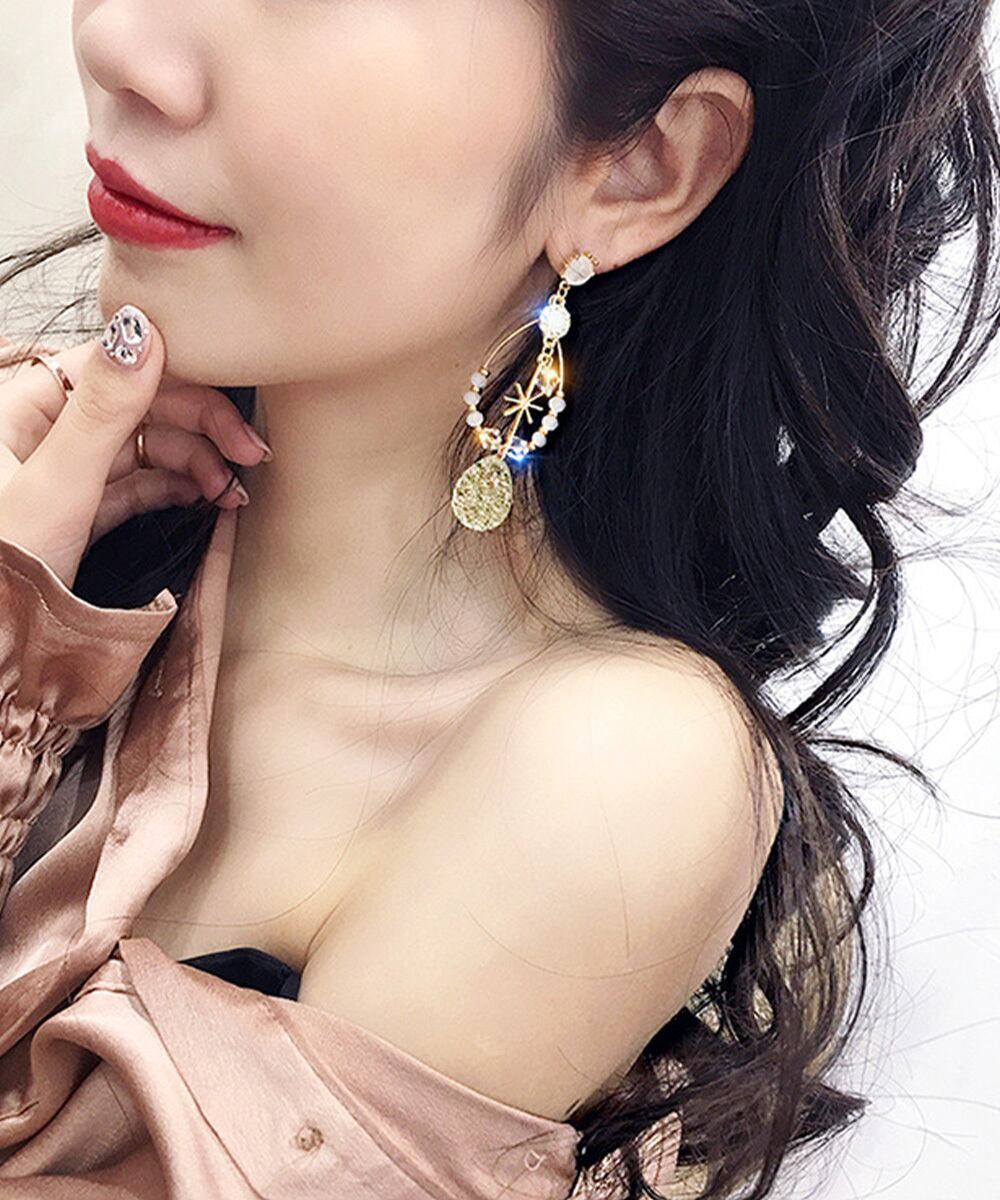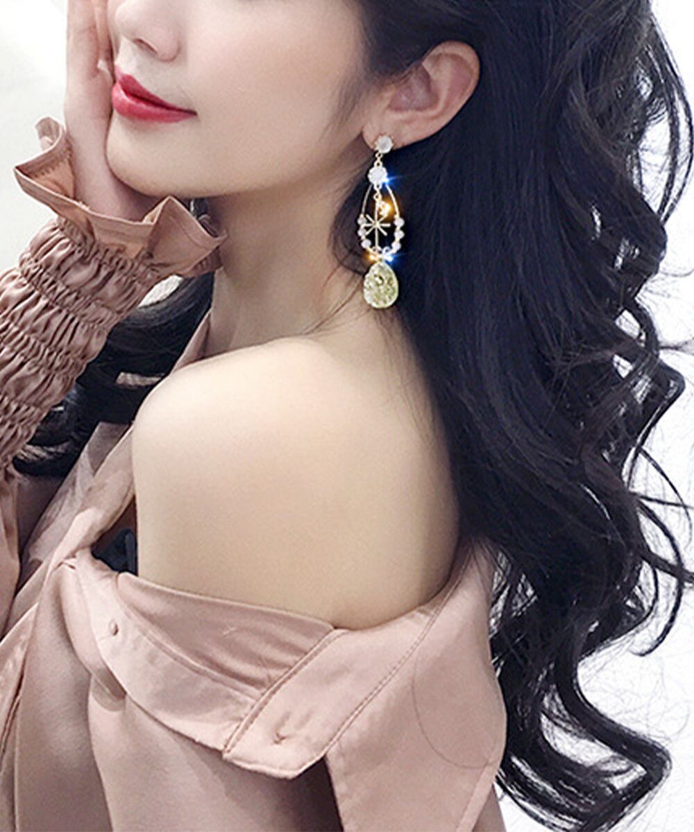 季節感のある爽やかなデザインで存在感抜群、身に着けるだけで耳元を華やかに彩る。